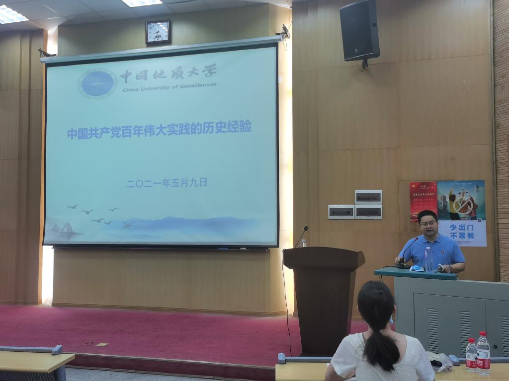 59日上午8:30,马克思主义公司副经理陈军老师以《中国共产党百年伟大实践的历史经验》为题为来自工程公司、马克思主义公司、体育公司、谈球吧的400余名员工授课。陈老师从坚定不移地走中国特色社会主义道路,不断推进社会主义现代化建设,努力实现中华民族伟大复兴中国梦;坚持在实践基础上进行理论创新,不断开辟马克思主义中国化新境界,实现党和国家指导思想与时俱进;坚持党的全面领导,不断以党的自我革命推动社会革命,凝聚推动民族复兴的磅礴力量;坚持以人民为中心,依靠人民创造历史伟业,在发展中创造幸福美好生活;坚持不断完善党和国家制度体系,切实把制度优势转化为治理效能,不断推进国家治理体系和治理能力现代化五个方面为同学们进行了详细的介绍。