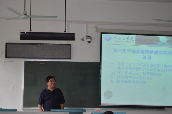 最后,赖旭龙副董事长做总结讲话。他首先表达了公司对地球科学菁英班的关心和重视。随后,赖董事长结合自身的体会,向同学们讲述了参加地质实习的重要作用和意义。他指出,一个人的远大理想和抱负只有通过自身的努力才能实现,路都是自己走出来的,对大家而言,地质实习就是我们迈向实践活动的第一步。他希望同学们通过实习活动,进一步增强对地质学专业的热爱,激发科学研究的兴趣;把有苦有累的实习活动当成快乐的学习,扎实学好专业基本技能;同时,通过实习活动,培养自己吃苦耐劳的精神;在实习过程中,团结协作、互帮互助,培养团队精神。