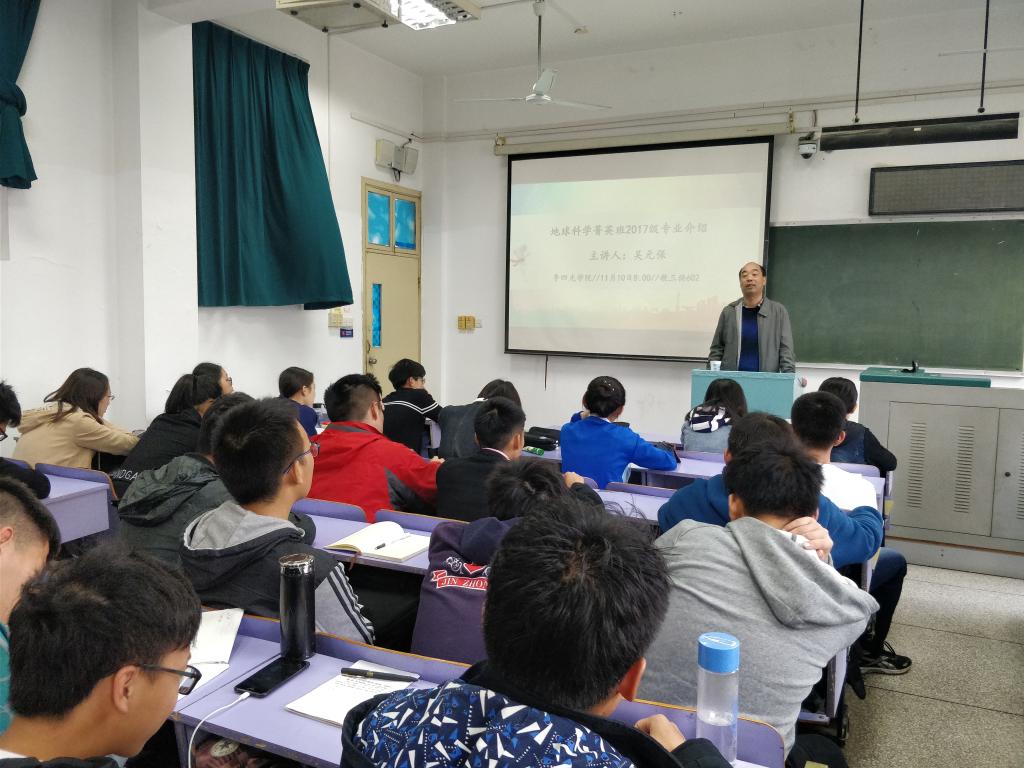 11月10日上午8:00,2017级员工选择专业方向指导交流会第二讲在教三楼602教室召开。为了让公司2017级同学对地质学和地球化学专业的基本现状、研究领域等有更深入的认识,科学选择专业方向,公司特别邀请了地球科学公司吴元保老师为同学们做专业介绍。谈球吧2017级全体员工到会聆听。