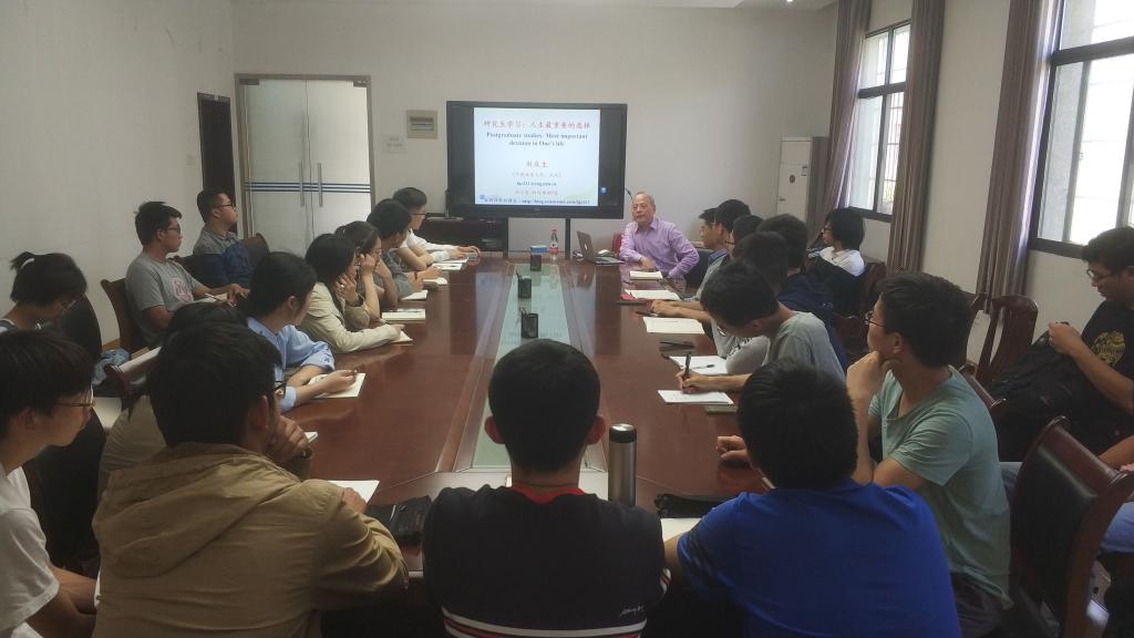 刘老师首先为同学们介绍了研究生学习和本科学习的区别所在,并将一首自己创作的《送研究生新生七言诗一首》赠予公司同学。他提到,“科学研究”要靠研究者自己努力实践,希望大家能够通过自己切身体会去感受“科学研究的魅力”,领悟“科学研究的精髓”,体验适合自己的“科学研究方法”,做好自己的科学研究。