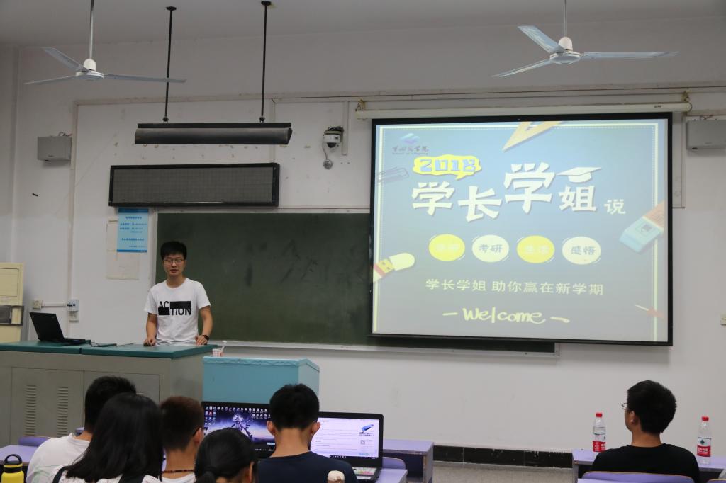 随后进行分享的是已保研至中国科公司遥感与数字地球研究所地图学与地理信息系统专业的王金晓同学。他主要结合自己的经历对学弟学妹提出一些告诫,大一大二时要早做规划,促使自己一直向着目标前进,不会因迷茫前路而庸碌当前。