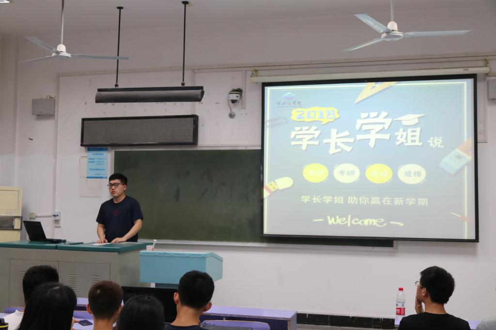 紧接着进行分享的是跨专业考研至北京交通大学交通运输公司交通工程专业的王震同学。他对大一大二的学弟学妹们说,如果不知道今后的方向,就先做好当下的事;对大三的学弟学妹们说,要勇于突破自己的心理舒适区,并结合自己的备考经历给同学们提出了一些建议。