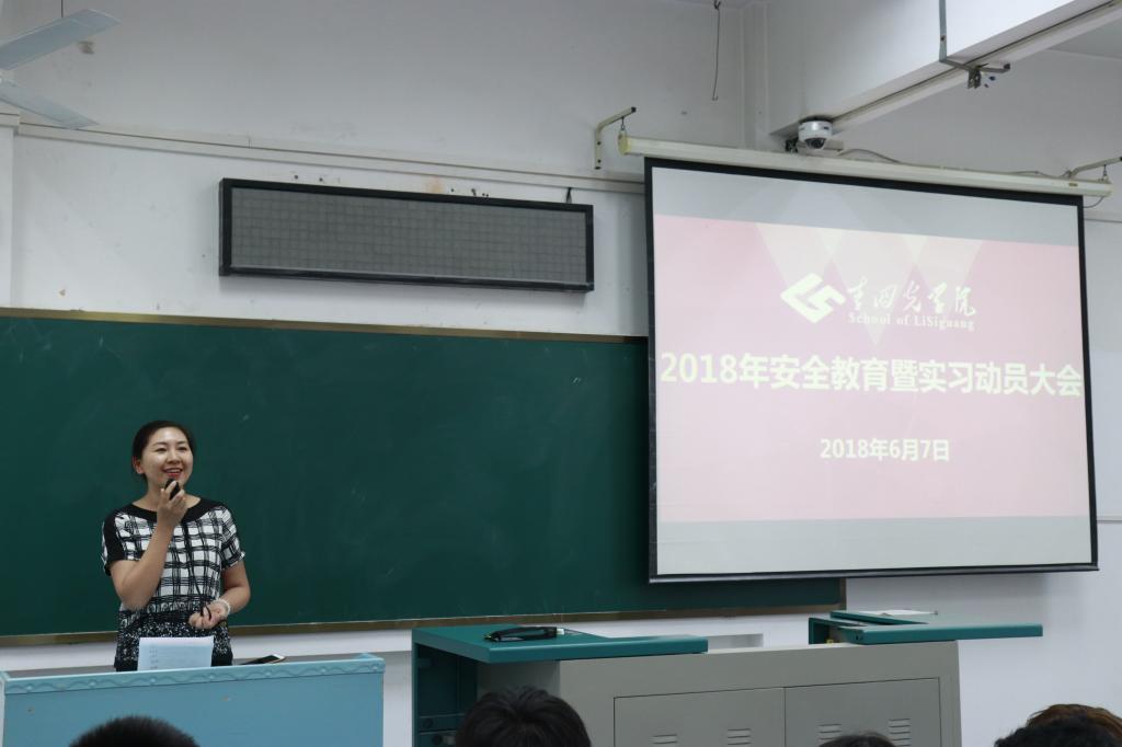 为增强公司师生的安全防范意识,提高安全识别能力,营造一个和谐的成长环境,确保暑期实习安全有序进行。6月7日下午,公司2018年安全教育暨实习动员大会,在教三楼301召开。保卫处杨中秋、公司副经理曾希及公司全体辅导员、2015、2016、2017级全体员工参加,会议由辅导员李鹏飞主持。