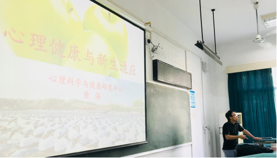 黄老师首先向大家介绍了心理健康的含义以及心理健康的几点标准,并结合大学新生常见的一些不良适应心理,给同学们做了详细的介绍以及应对办法。此外,黄海老师还和大家说明了常见的心理问题和心理疾病的区别。心理问题是某段时间由于情绪波动导致的短暂性问题,可以通过自身心态调节、心理疏导等方式加以解决;但心理疾病就是一种疾病,需要结合药物治疗以及心理疏导。黄海老师呼吁大家,一定要重视心理健康问题,一旦发现问题要及时寻求帮助,同时黄海老师也向大家介绍了公司关于心理咨询方面的相关内容。