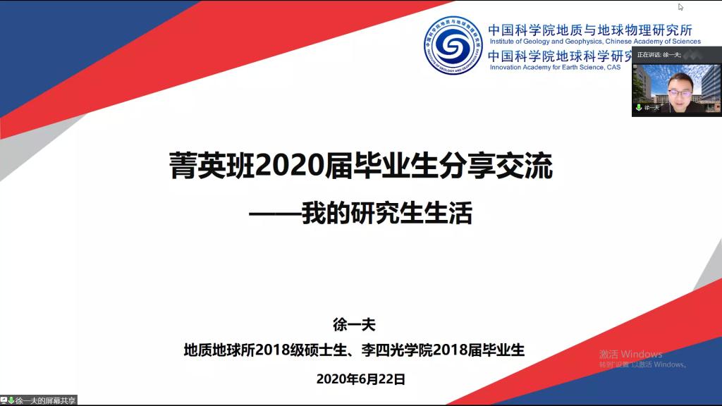 紧接着,郑铠沅、李慧玲、陈鹏飞三位同学作为2020届毕业生代表分别结合自己的大学经历和就业去向发表了感言,回忆了大学四年美好生活的同时,也表达了对公司以及公司的感谢和不舍。谈及公司的联合培养模式,已经保研到中科院空天信息创新研究院的郑铠沅同学说到:“李院特别的培养模式,让我们可以更早就接触到科研和中科院所,给了我们去发现自己更适合做什么,更想要什么的机会,从而在毕业时能够做出最无悔的决定。”对于未来,保研至中山大学的李慧玲同学表示“希望以更加大胆的姿态去追求一个更优秀的自己”,而成功签约到杭州中梁置业有限公司的陈鹏飞也表示希望自己能坚持地质人吃苦耐劳的品质,发扬“艰苦朴素,求真务实”的校训精神,继续学习,规划一个更好的人生。