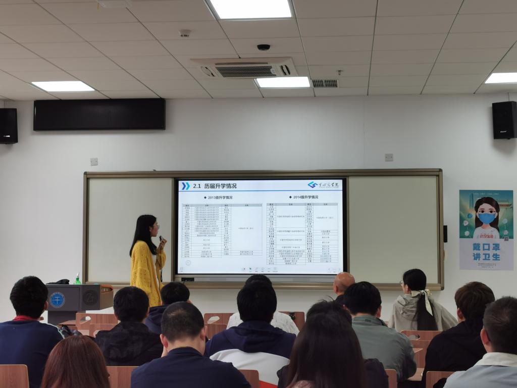 首先思静老师为大家梳理了同学们目前的总成绩和四六级情况,介绍了公司历届毕业生的升学情况,希望同学们能利用保研前的最后一学期努力提升成绩、学好英语,争取通过保研升学。
