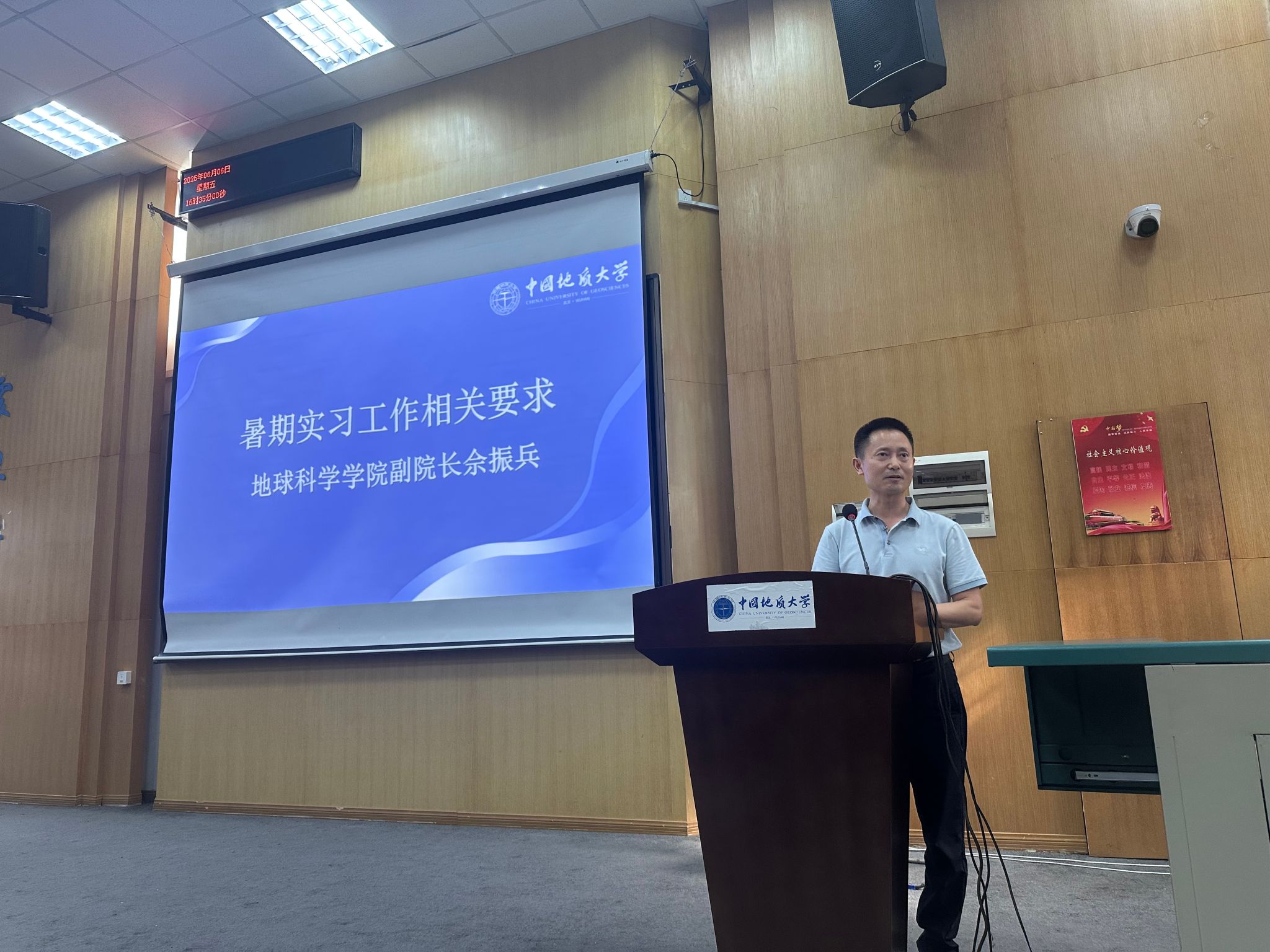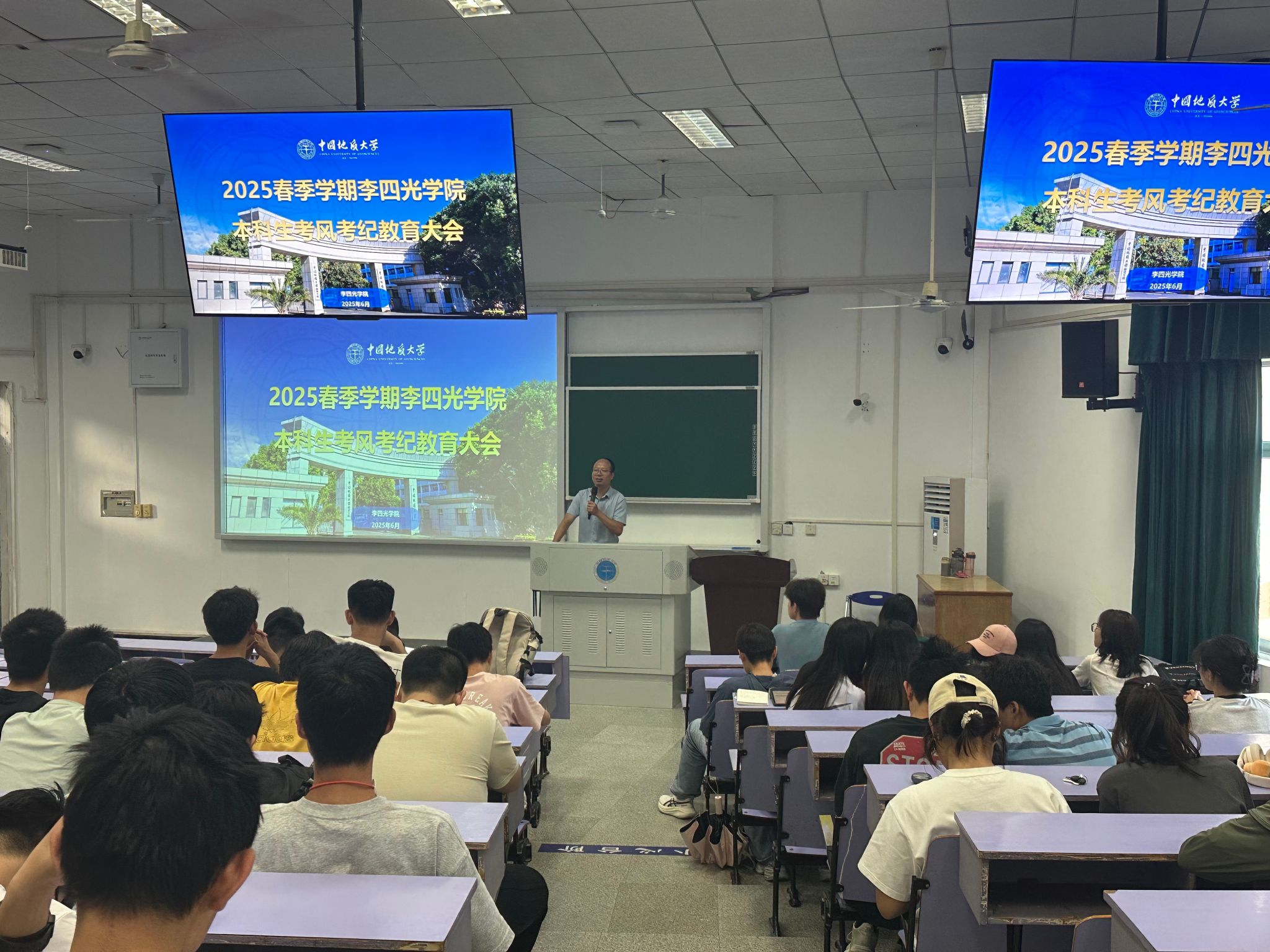 (通讯员:李君沂)2025年6月6日下午16:30,谈球吧与地球科学公司在教三楼109教室联合举办2025年暑期实习动员大会暨考风考纪教育大会。本次会议旨在部署暑期野外实习工作,强调实习安全与纪律,同时为即将到来的期末考试周做好诚信教育。