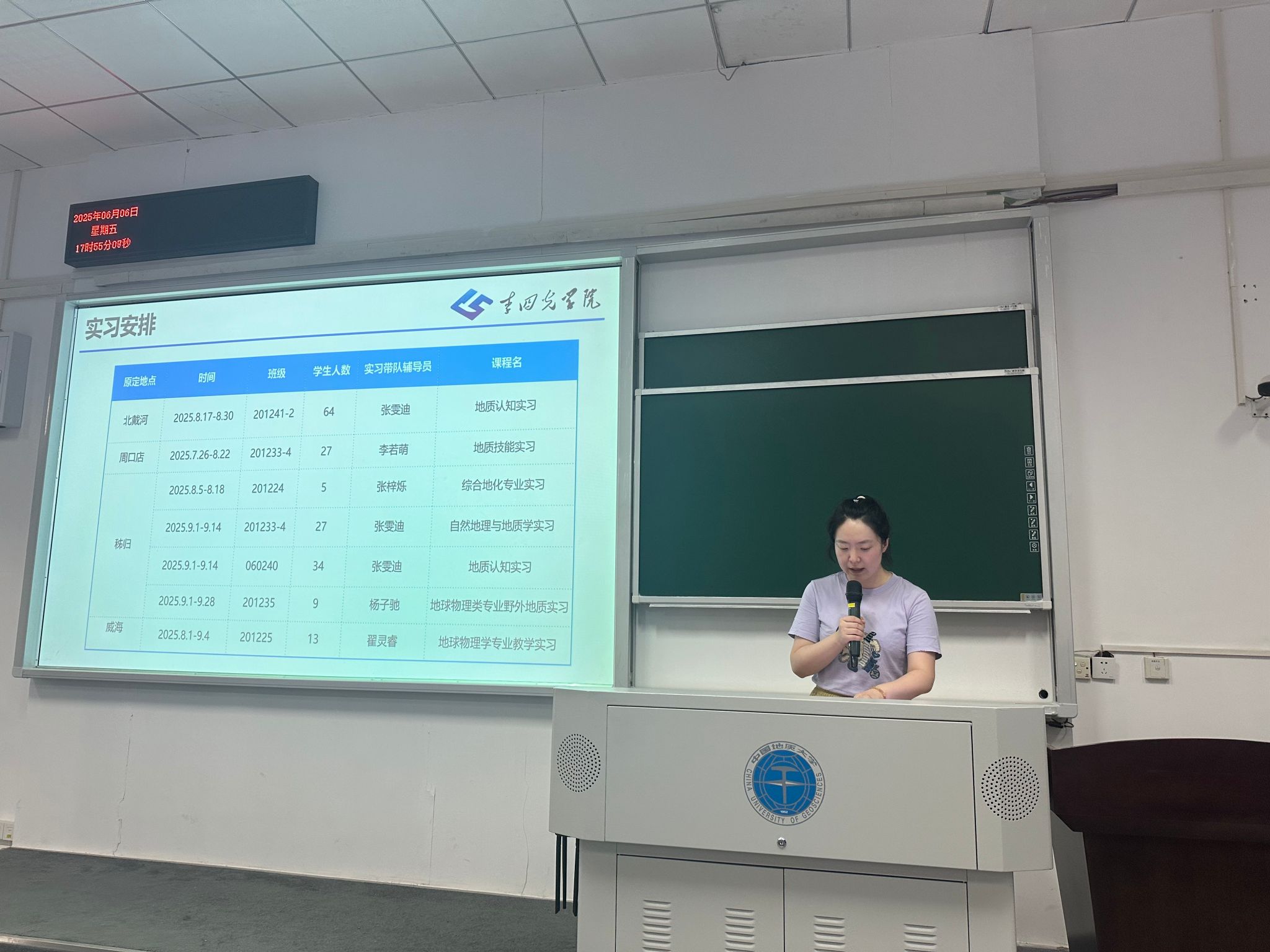 接着,辅导员李若萌老师对暑期实习的具体安排进行了详细介绍,包括:交通与行程、费用说明、物资准备、分组管理、安全预案。李老师特别提醒同学们,野外实习既是学习的重要环节,也是对个人能力的全面锻炼,希望大家在保证安全的前提下,珍惜实践机会,提升专业素养。