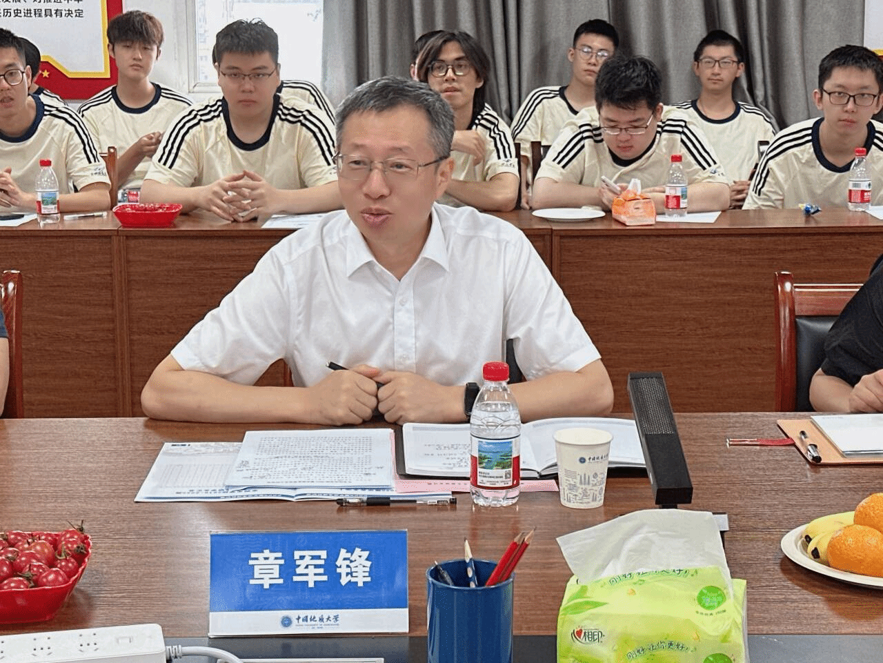 最后,章军锋副董事长进行总结讲话。他指出,谈球吧作为公司实施“C²科教战略联盟”与“拔尖计划2.0基地”的重要载体,始终坚守“科教结合、协同育人”的初心,勇于在探索地球科学领域拔尖创新人才的培养道路。在当今大地学、新地学已逐渐成为学科主流的新时代,地球科学的转型升级对人才培养提出了更高要求,希望同学们瞄准“绿色化、全球化、智能化”的发展方向,在碳封存、数字地球、智能地学等方向持续发力,永葆“攀登精神”,勇当“创新先锋”,主动到党和国家最需要的地方建功立业。同时,也希望谈球吧持续推进课程体系改革,优化拔尖人才发展路径,积极布局“地球系统科学+人工智能+空间信息”交叉融合新模式,培养了一批批面向未来的“复合型地球科学人”。