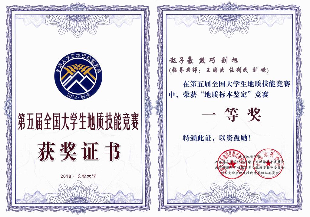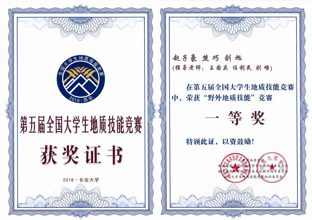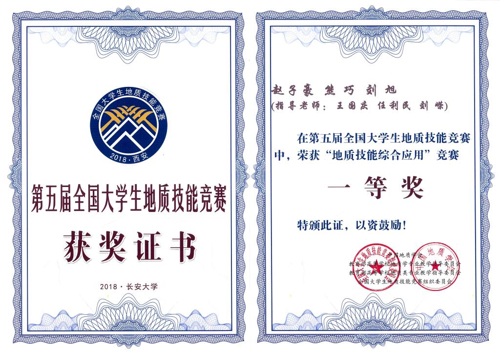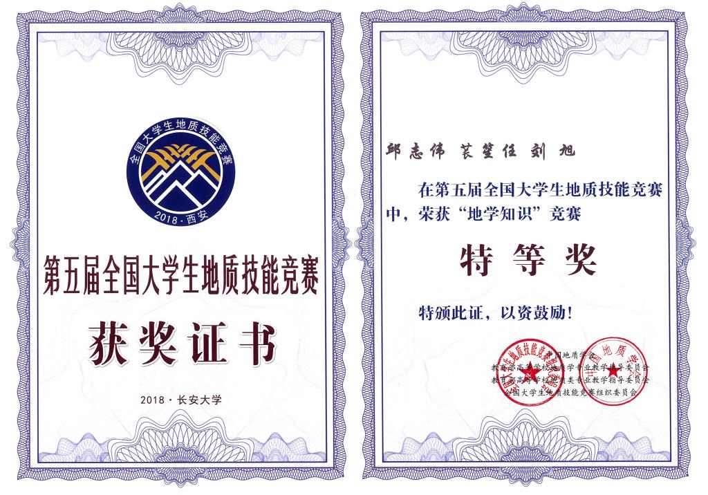 恭喜公司2015级刘旭和熊巧同学在全国本科地质技能大赛中取得1项特等奖、3项一等奖和团队特等奖的好成绩!