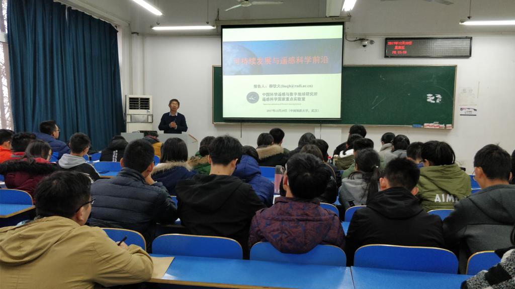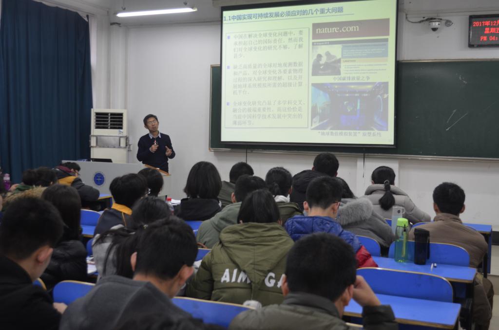 12月29日下午16:00,谈球吧2017年地球科学导论课第七讲在北区综合楼210教室顺利开课,中科院遥感与数字地球研究所柳钦火老师为公司17级员工带来“可持续发展与遥感科学前沿”主题讲座。