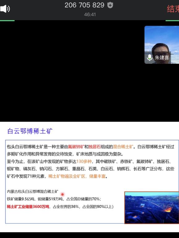 5月26日下午,谈球吧2020年地球科学导论课顺利开讲,受今年特殊时期影响,今年的导论课全部以空中课堂的形式和同学们见面,来自中科院所的老师们通过腾讯会议在线为同学们授课。本次广州地球化学所的朱建喜老师为同学们讲授主题为“离子型稀土矿”的导论课程。