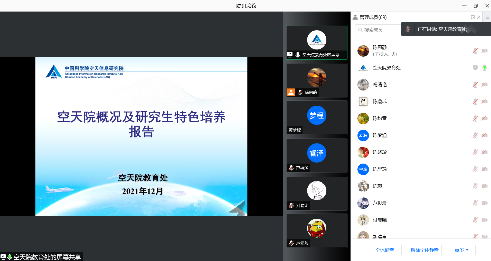 导论课结束后,中科院空天信息创新研究院教育处马振均老师向员工介绍了空天信息创新研究院的概况和公司产品情况,并与张兵老师、教育处卢葱葱老师一起和员工进行了交流,解答了员工的疑问。三位老师鼓励菁英班员工在本科阶段努力打好基础,丰富科研经历,为以后升学做好充足的准备。