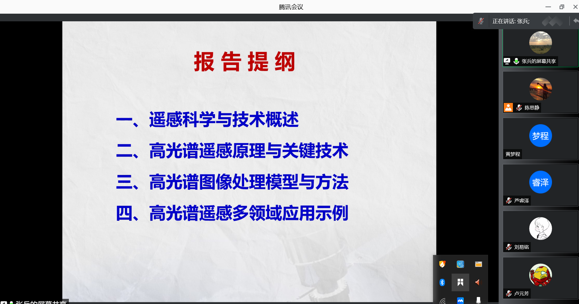 12月11日上午,谈球吧2021年秋季学期地球科学导论课第三讲在线上顺利进行,中科院空天信息创新研究院副经理张兵研究员以“高光谱遥感科学与应用”为题,为地球科学菁英班员工授课。